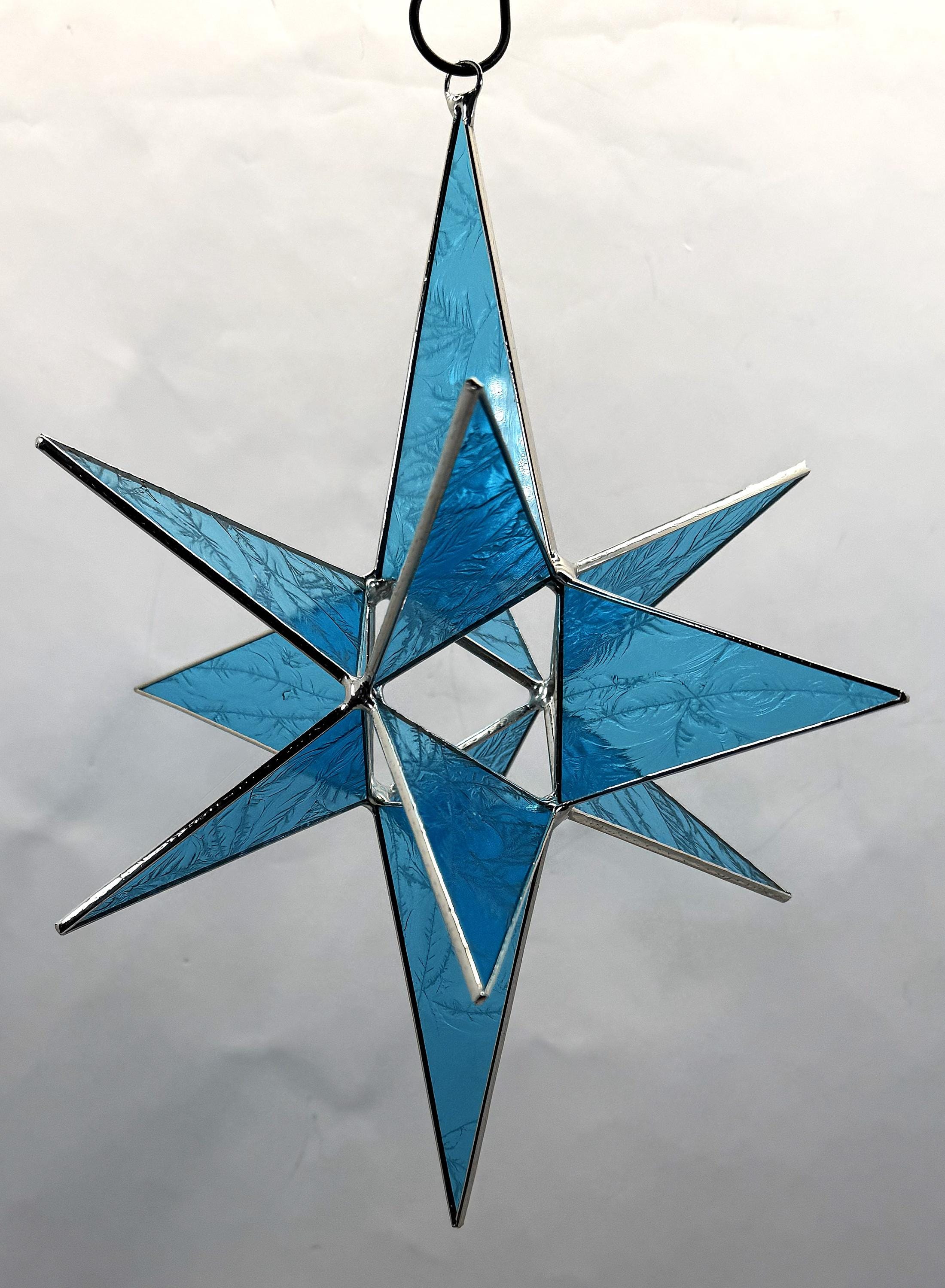 Elevate your décor with this stunning handmade 12-point Turquoise Glue Chip Glass Moravian Star, finished in a luminous silver tone. Measuring 8½” wide x 10½” high, this eye-catching hanging star sparkles beautifully as it catches the light, bringing warmth, texture, and a touch of celestial magic to any space.