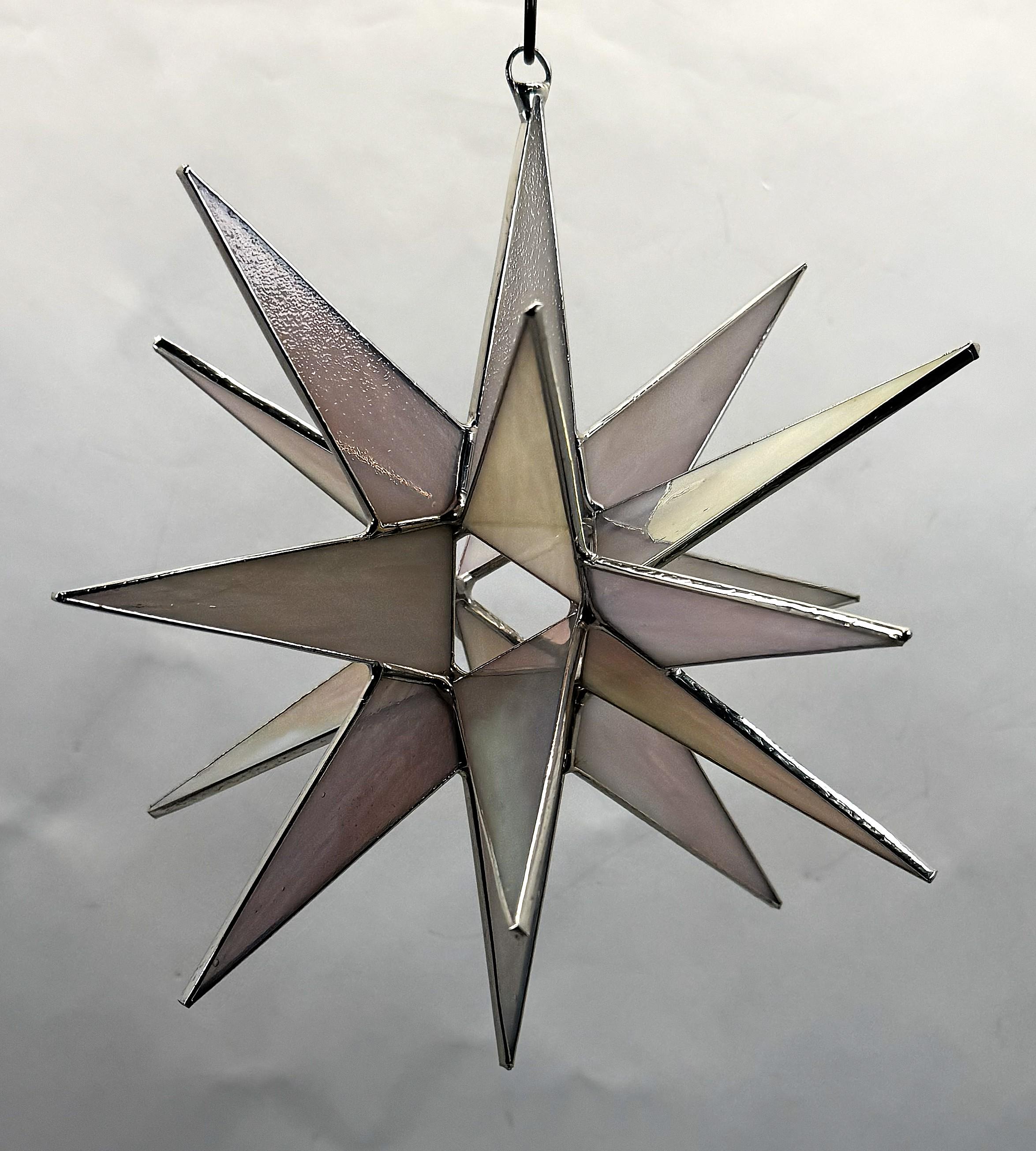 Each star is handcrafted and polished in my studio, originally based in Bethlehem, Pennsylvania — the birthplace of the Moravian star tradition — making this piece a meaningful example of traditional holiday décor and artisan glasswork.