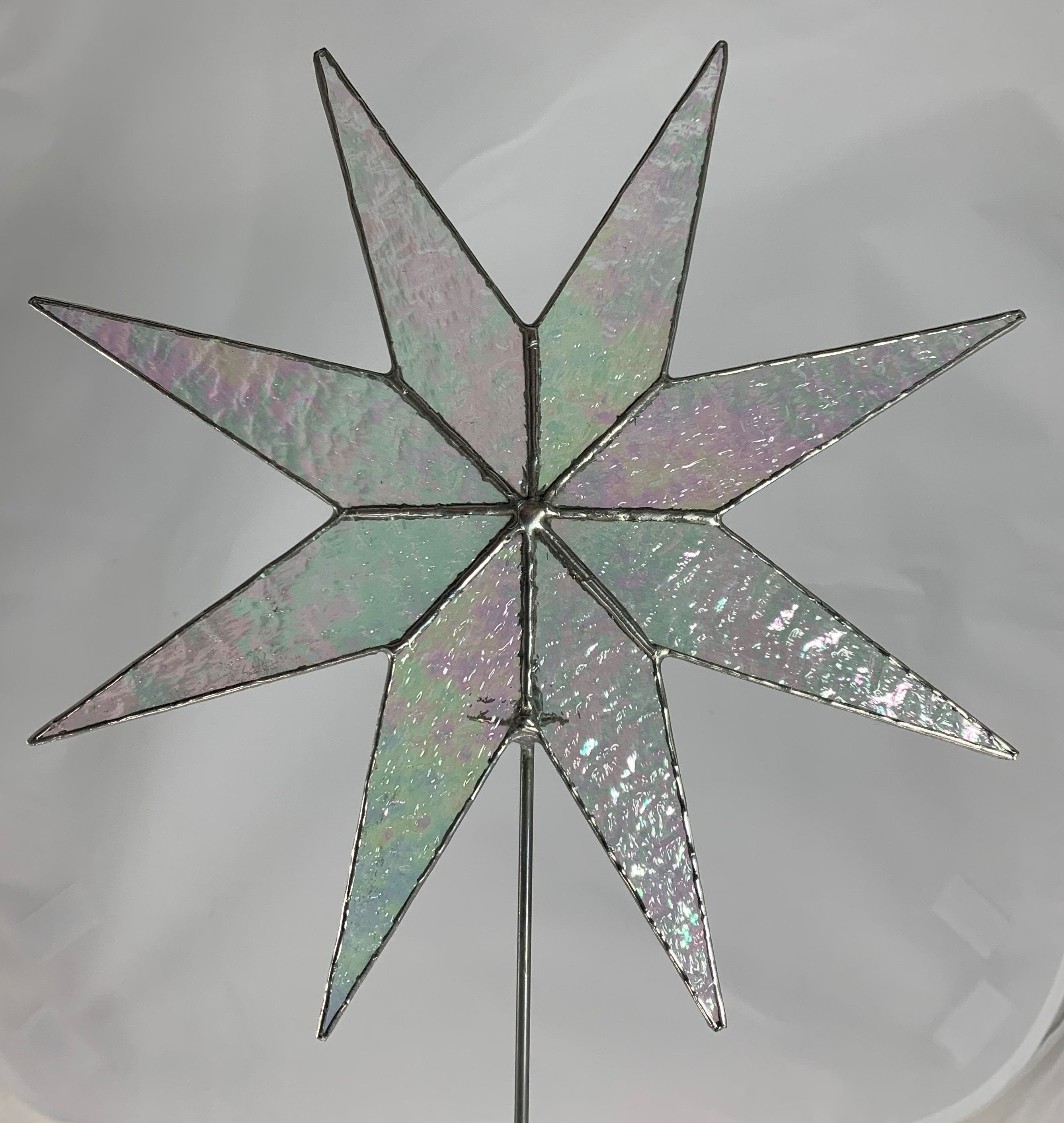 This beautiful 8 Point star is handcrafted in our stained glass studio formerly located in Bethlehem, Pennsylvania.